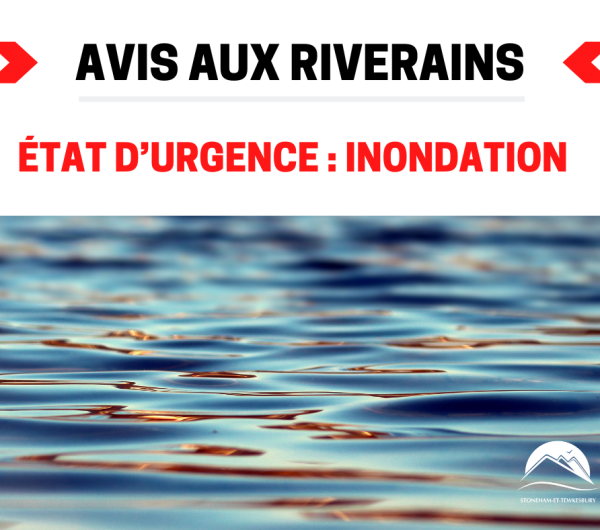 En raison des fortes pluies, qui ont fait déborder de leurs lits plusieurs cours d’eau provocant déjà de nombreuses inondations dans certains secteurs, la municipalité des cantons unis de Stoneham-et-Tewkesbury a déclaré l’état d’urgence.