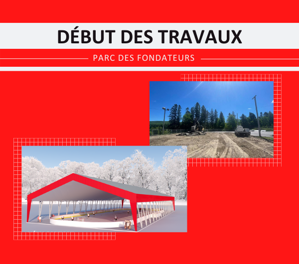 C'est avec enthousiasme que la Municipalité vous annonce officiellement le début des travaux pour le projet de construction d'un toit sur la patinoire du parc des Fondateurs accompagné de l'installation d'un système de réfrigération de la glace.