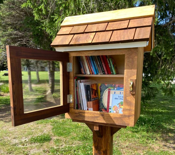 Cette belle boîte à livres nous a été offerte généreusement par l’entreprise Menuiserie C.J.V. inc. et madame Caroline Pruneau, qui a voulu s’impliquer dans sa communauté.