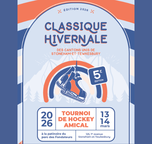 Venez encourager les équipes locales qui s'affronteront durant deux jours sur la glace de la patinoire de Stoneham. Un tournoi de hockey très chaleureux (quelque soit la température extérieure!) qui représente la vitrine parfaite pour faire briller les joueurs et joueuses d'ici!