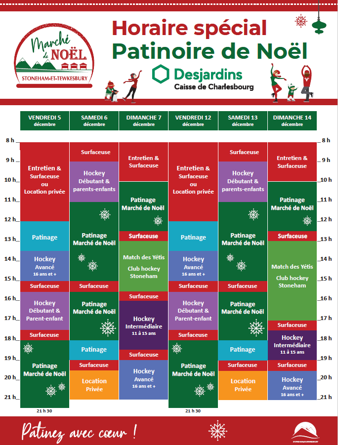 Patinage libre, ambiance des fêtes sur la patinoire de Noël Desjardins