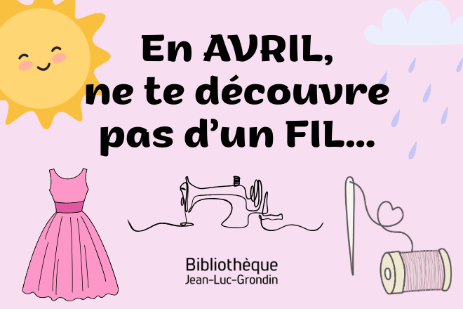 Qui ne connait pas ce vieux proverbe français, basé sur l'observation ancestrale du climat printanier changeant, nous rappelant qu’Avril est un mois de transition où le soleil peut rapidement laisser place au froid. De nombreuses expressions utilisent le mot « fil » et, « de fil en aiguille », cela nous a inspiré pour notre thématique mensuelle à la bibliothèque Jean-Luc-Grondin.